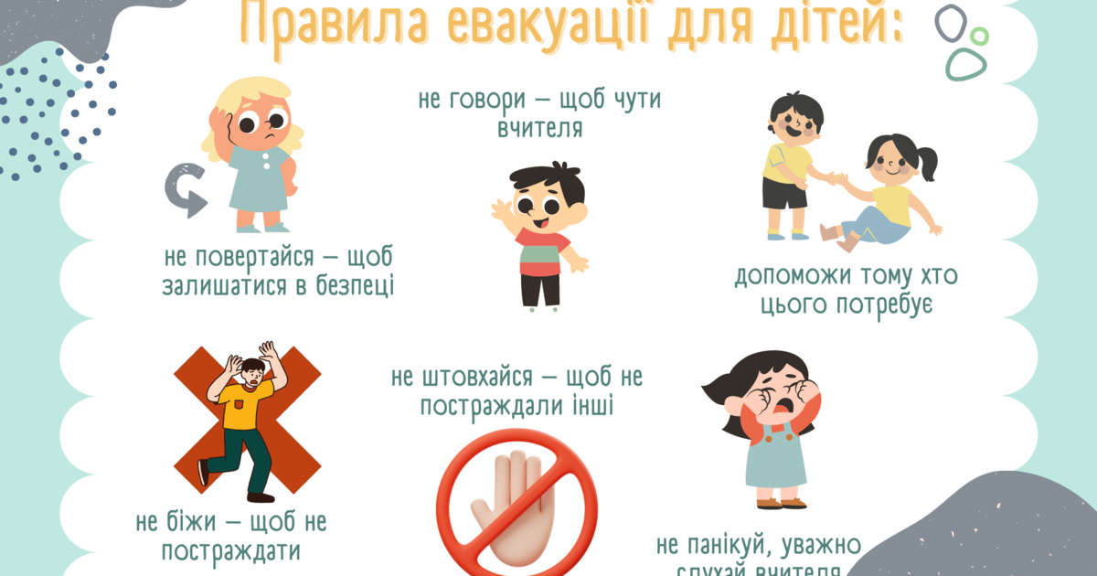 • Нагадайте дітям мету та правила евакуації.